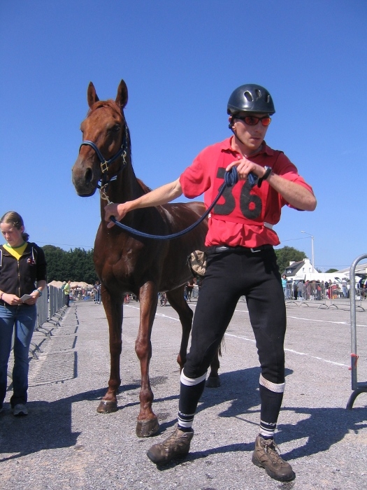 Formule inédite en France à laquelle étaient conviés les cavaliers d'Endurance. C'est en effet la première fois qu'un raid de trois jours (2, 3 et 4 juin) se déroule dans l'hexagone. 22 concurrents avaient répondu présent à la convocation de l'Union Sportive de Mane (04), organisatrice de la manifestation. Le nombre de partants restreints (22 au départ 11 à l'arrivée) s'explique par le fait que beaucoup ont eu peur de se lancer dans une telle aventure (3 fois 75 km). Il est vrai aussi que d'autres avaient choisi de concourir à l'étranger: l'équipe de M. Jacquelin de Romans se rend en Allemagne pour un marathon de 160 km et l'équipe de M. Letartre de Puy l'Evêque partait pour le Portugal où se déroulait une épreuve similaire. Le parcours de 75 km était très sinueux et relativement difficile. Les cailloux de Provence et le soleil méditerranéen constituaient un souci supplémentaire pour les cavaliers. Cela explique sûrement les moyennes très modestes réalisées par les concurrents : moins de 18 km/h pour le premier. A titre de comparaison, Denis Letartre réalisait 23 km/h sur 260 km en 3 jours l'an dernier au Portugal. Les deux premiers jours le départ se fit en groupe et le 3ème jour contre la montre. Excellente initiative: cela évite les sprints quelquefois meurtriers pour les chevaux et permet également de juger les cavaliers à leur valeur. Un contrôle vétérinaire au km 36 était assuré par quatre vétérinaires ; qui n'ont pas eu à sévir, les onze concurrents qui ont abandonné l'ayant fait d'eux mêmes. |