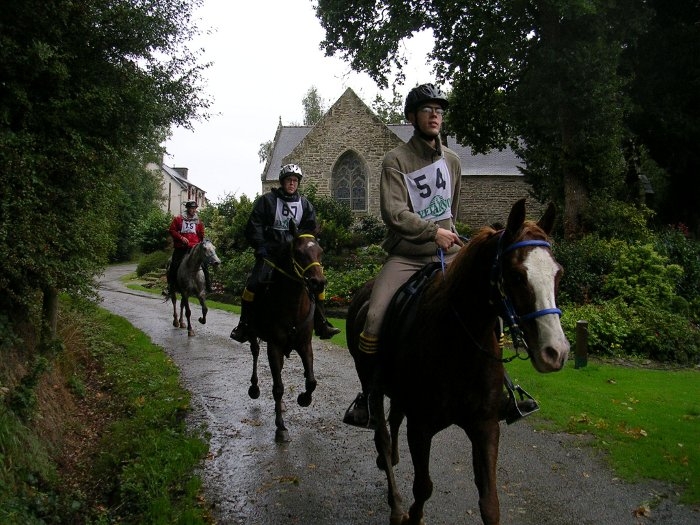 Je ne pensais pas qu'il y eut un grand suspens dans ce type d'épreuve, je me trompais: X est en tête, à une minute de Y mais le plateau des Causses lui sera fatal, il devra ralentir ou s'arrêter... etc... etc... autant de commentaires que l'on entend à chaque étape vétérinaire... et le suspens demeure, un peu comme dans une course cycliste ou automobile - même si la comparaison n'est ni idéale, ni de bonne augure ! Les points de rencontre avant l'arrivée seront au kilomètre 76 (45 mn d'arrêt) et au kilomètre 104 (30 mn d'arrêt). Beaucoup de chevaux seront éliminés (32) par les vétérinaires avant le kilomètre 125, l'arrivée : le coeur bat trop vite, la récupération est insuffisante ou le cheval accuse une trop grande fatigue. Un camion vient alors le chercher pour l'emmener à un box bien mérité. Sur la course, plusieurs points de vision sont prévus pour le public qui peut ainsi voir les cavaliers évoluer sur plusieurs kilomètres, comme au col du Sapet ou au pont du Tarn. Côté course proprement dite, deux couples sont en tête - ex aequo - au dernier contrôle vétérinaire: Jean-Luc Chambost et Kid (8 ans - Origines Inconnues) et Chrystel Letartre et Barol (12 ans - Selle Français). Finalement, le jeune vétérinaire passera la ligne d'arrivée le premier sous les chaleureux applaudissements du public, composé essentiellement d'habitants de la région. Notons que nous avons pu voir un peloton de 5 cavaliers arriver ventre à terre à l'entrée de la dernière ligne droite... pour des chevaux qui viennent de courir 125 km, ce n'est pas mal ! Alain de Grandsaigne Sources : archives de D. Letartre |