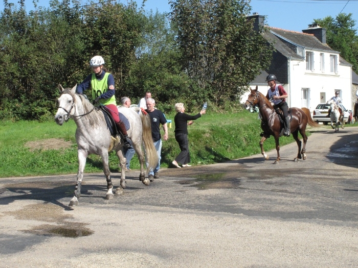 | Alors que les premiers concurrents du championnat de France d'endurance équestre du 28 août sont déjà arrivés à Locmaria-Berrien, les équipes de bénévoles de Locmaria, Huelgoat, LaFeuillée, Scaer, Plounévézel, L'Hôpital-Camfrout ont balisé le circuit des 160 km, sous la direction de François Kériel. Il s'agit d'un balisage propre : plaque blanche, avec fer à cheval et flèche, fixée sur un piquet de bois. Ce balisage, indispensable aux cavaliers qui veulent reconnaître l'itinéraire de l'épreuve, sera enlevé dès le lendemain. Il est regrettable que des personnes mal intentionnées aient déjà arraché les piquets, cassé et jeté les plaques. L'association organisatrice est consciente que des balisages plus ou moins propres sont restés en place, mais elle n'est nullement responsable de ces faits. |