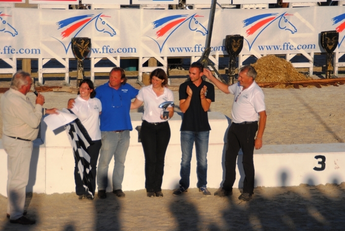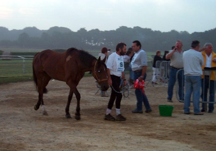 Reconnaître approximativement le train dans lequel il court (voir tableau) - Déroulement d’une épreuve : Retirer à l’accueil votre dossier dans lequel se trouvent l’itinéraire, le dossard et la carte vétérinaire qui doit être présentée à chaque contrôle ; Renseignez-vous sur le balisage, la présence éventuelle d’endroits difficiles et le nombre exact de kilomètres à parcourir, cela vous permettra de calculer à l’avance vos temps de passage et d’arrivée afin de respecter la vitesse moyenne imposée. Tout au long de la journée les vétérinaires suivront attentivement l’état de votre cheval, il est important de les considérer comme des alliés qui vont vous aider à protéger efficacement et à mieux connaître votre partenaire cheval. Le contrôle vétérinaire initial : Se présenter au contrôle vétérinaire muni des papiers d’identification (vaccinations à jour) et la carte vétérinaire de l’épreuve. Le cheval est présenté sans selle et en licol ou en filet. Le vétérinaire vérifie les allures du cheval sur un aller-retour de 30m. au trot et note la fréquence cardiaque au repos ainsi l’état général de votre cheval. Sur l’itinéraire, souvenez-vous que les chevaux même en compétition ne sont pas prioritaires sur les autres véhicules. A l’aide du tableau de marche (voir annexe) essayer de soutenir un train régulier , le cheval récupère mieux d’un effort régulier et continu que de gros efforts par à coups entrecoupés de repos. Soyez détendus et légers en selle, vous aiderez votre cheval. L’équipe d’assistance : à chaque point de rencontre avec le cavalier elle abreuve le cheval et, si besoin est, arrose son encolure afin de le refroidir. Ceci le plus régulièrement possible. Elle doit respecter le code de la route ainsi que les zones de ravitaillement prévues par l’organisateur. Elle récupère les bouteilles qui ont servi. Le contrôle vétérinaire intermédiaire : il a lieu au cours de la première 1/2h pendant l’heure d’arrêt. Le vétérinaire vérifie la récupération du cheval : Sa fréquence cardiaque Le contrôle final : il a lieu 1/2 h après l’arrivée, il se déroule comme les contrôles intermédiaires. Soins aux chevaux après l’épreuve : Doucher les membres, l’encolure et les épaules, attention aux douches trop froides sur les reins, le ventre et la croupe. Bouchonner ou étriller doucement le corps pour nettoyer et masser le cheval. Sur les tendons on peut poser des emplâtres ou des bandes de repos. Ne pas donner à manger de concentrés (granulés ou grains) dans les 2 heures qui suivent l’effort. Abreuver à volonté, protéger le cheval des vents froids comme du grand soleil. Les résultats : Sont qualifiés à l’issue de l’épreuve tous les chevaux et cavaliers ayant terminé l’épreuve à la vitesse imposée et non éliminés pour des raisons vétérinaires ou règlementaires. D’autre part le classement se fait à partir du calcul suivant : [(vitesse x 2) – vitesse mini de l’épreuve] x 100 = ………… Points fréquence cardiaque au contrôle final Ce calcul qui tient compte de la vitesse et de la récupération favorise les cavaliers qui adaptent au mieux l’effort demandé aux possibilités du cheval. |