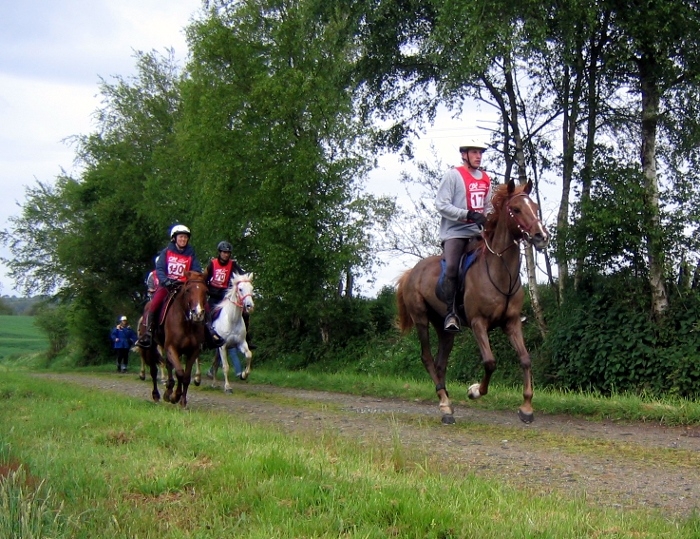 Lise Chambost et sa petite jument Kaline firent sans aucun doute une des plus belles courses, augmentant leur moyenne progressivement au fil des étapes. Départ des concurrents pour l'épreuve de contrôle du lendemain qui se déroulait sur un circuit de 25km |