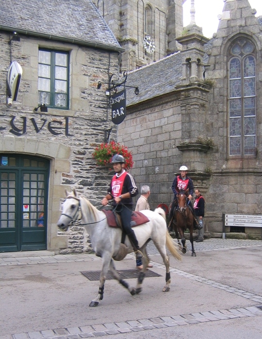 Je ne pensais pas qu'il y eut un grand suspens dans ce type d'épreuve, je me trompais: X est en tête, à une minute de Y mais le plateau des Causses lui sera fatal, il devra ralentir ou s'arrêter... etc... etc... autant de commentaires que l'on entend à chaque étape vétérinaire... et le suspens demeure, un peu comme dans une course cycliste ou automobile - même si la comparaison n'est ni idéale, ni de bonne augure ! Les points de rencontre avant l'arrivée seront au kilomètre 76 (45 mn d'arrêt) et au kilomètre 104 (30 mn d'arrêt). Beaucoup de chevaux seront éliminés (32) par les vétérinaires avant le kilomètre 125, l'arrivée : le coeur bat trop vite, la récupération est insuffisante ou le cheval accuse une trop grande fatigue. Un camion vient alors le chercher pour l'emmener à un box bien mérité. Sur la course, plusieurs points de vision sont prévus pour le public qui peut ainsi voir les cavaliers évoluer sur plusieurs kilomètres, comme au col du Sapet ou au pont du Tarn. Côté course proprement dite, deux couples sont en tête - ex aequo - au dernier contrôle vétérinaire: Jean-Luc Chambost et Kid (8 ans - Origines Inconnues) et Chrystel Letartre et Barol (12 ans - Selle Français). Finalement, le jeune vétérinaire passera la ligne d'arrivée le premier sous les chaleureux applaudissements du public, composé essentiellement d'habitants de la région. Notons que nous avons pu voir un peloton de 5 cavaliers arriver ventre à terre à l'entrée de la dernière ligne droite... pour des chevaux qui viennent de courir 125 km, ce n'est pas mal ! Alain de Grandsaigne Sources : archives de D. Letartre |