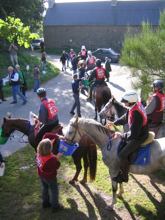 Lors du premier contrôle vétérinaire, situé à 25 kms du départ dans le village de Blerancourt, un arrêt de 30 mn fut imposé aux cavaliers. Le second contrôle avait lieu à Tracy le Mont où les cavaliers reposèrent leur monture pendant une heure. 50 kms au rythme des trompes de chasse. C'est de Tracy le Mont en forêt de Laigue, que fut donné le départ de l'épreuve de 50 kms à laquelle prit par un grand nombre de boutons des équipages de chasse à courre de la région. De 5 mn en 5 mn, par équipe de deux et au son des trompes de chasse, 23 cavaliers se lancèrent sur le dernier tronçon de 50 kms. Les chevaux pour la plupart aux origines de trotteur, passèrent aisément les tests vétérinaires lors du premier contrôle à 25 kms de l'arrivée. Les cavaliers menaient leurs chevaux avec sagesse dans un esprit de participation beaucoup plus que de compétition. Ce sera pour bon nombre d'entre eux, une épreuve de contrôle clôturant la saison de chasse. L'équipage Bocquillon arrivera en tête à Longpont en couvrant les 50 kms en 2 h 45 à la moyenne de 18,18 km/h. Le directeur de la circonscription des haras de Compiègne, M. de Torré avait pris,le départ de l'épreuve des 50 kms (2ème partie) avec son cheval personnel. En tenue de fonction, M. de Torré ouvrait la marche aux cavaliers effectuant le parcours hors classement dans un très bon temps. Sa monture arriva en parfaite condition, prouvant ainsi que le raid d'endurance est une compétition qui peut se pratiquer en toute sécurité pour les chevaux comme pour les cavaliers. Son attitude a une. valeur d'exemple, nous l'en remercions. F. Arnaud |