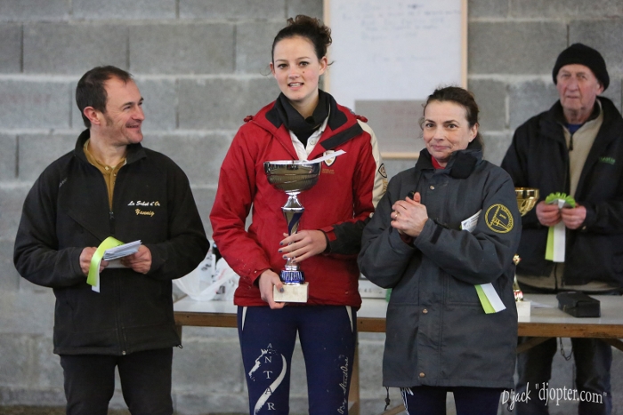 1 - En tête du peloton : JP Falque sur Sarazin (8ème), suivi de Lise Chambost sur Kaline (5ème) et de l'américain Smokey Kilian sur Barol (4ème)